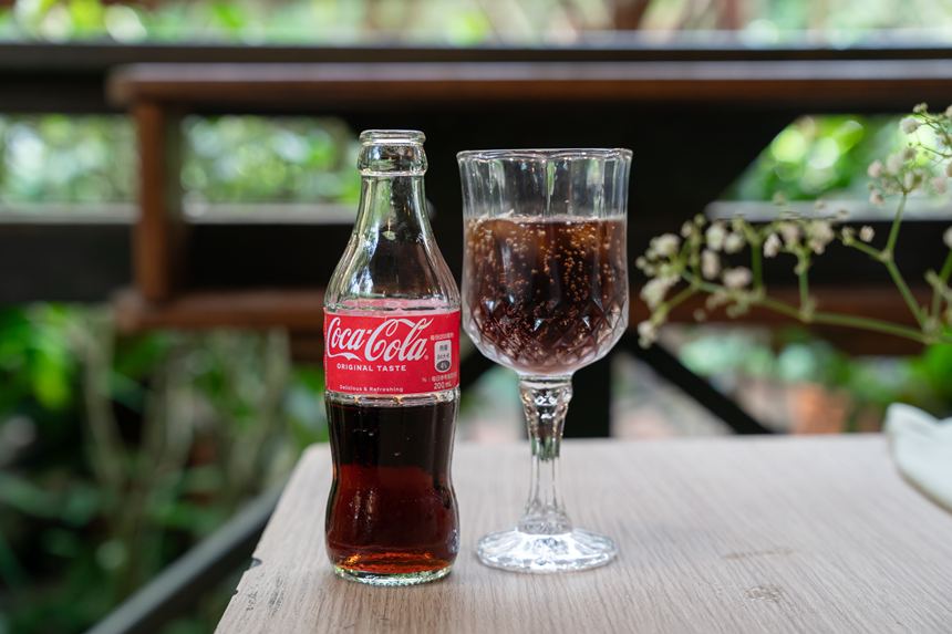 ここで本来ならデザートが出てくるところですが、それはまた後のお楽しみということでドリンクのコーラが日本にはないミニサイズの瓶で面白かった。
