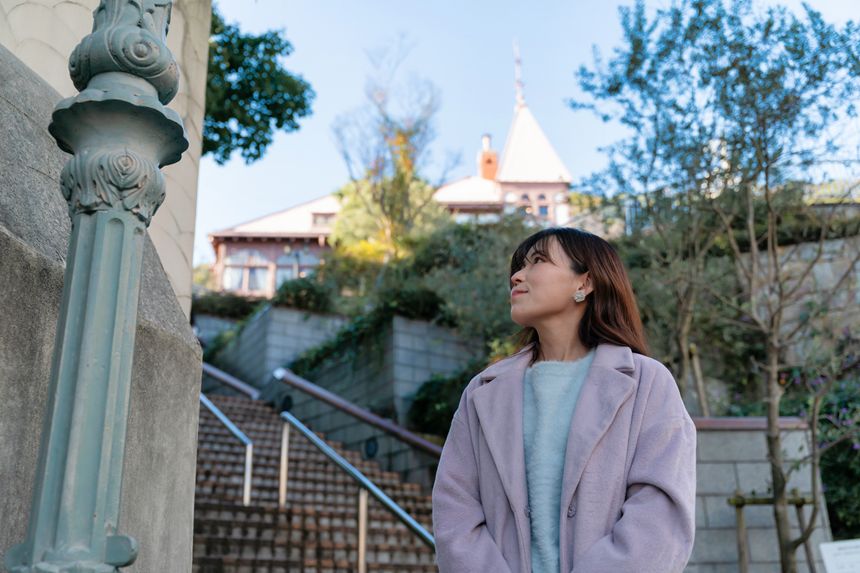 この北野町広場だけでもフォトスポットだらけ。特にポートレート好きにはたまらないロケーションなので、ぜひあちこち角度を変えて撮ってみましょう。