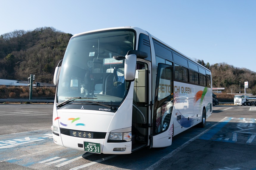出発は新居浜や三豊、高松など各地から。朝6時台〜8時台にかけて、続々と参加者がバスに乗り込んできます。
