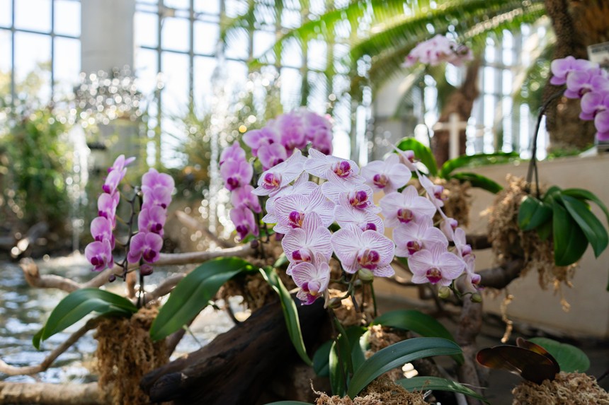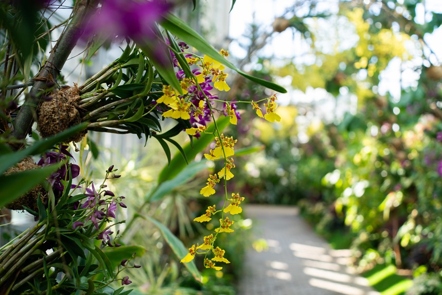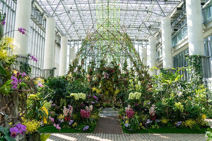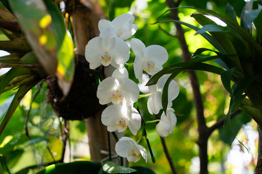 世界各地の植物を背景に、340種2800株という色とりどりの蘭がずらりと並び、まるで海外の植物園に来たような雰囲気です。