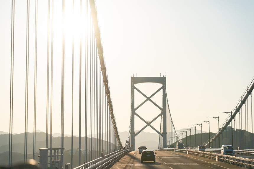 バスは道中トイレ休憩を挟みながら大鳴門橋を通って淡路島へ。車窓から見える海と橋の景色に、「旅行に来た感」が一気に高まります。